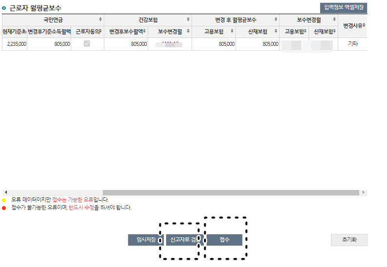 (국민연금은 20% 이상 변동 시만 처리됩니다)
